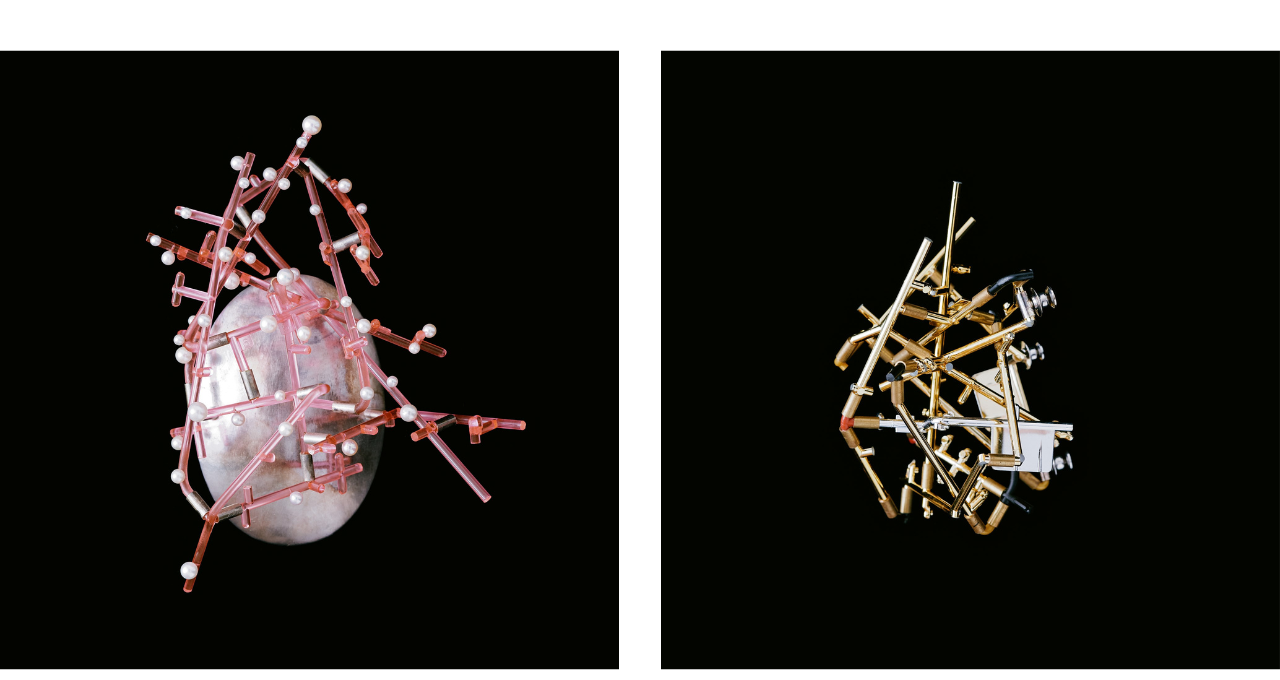 (左)RUNNER_VIPPERⅡ_Ornament/プラモデル、950シルバー、淡水真珠、接着剤/2016/個人蔵