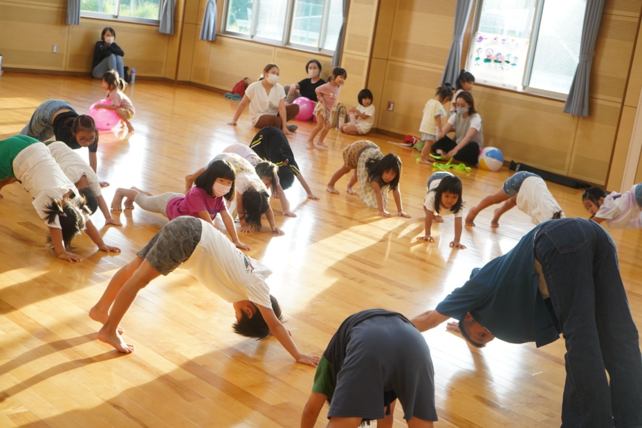 音楽に合わせて体をうごかして簡単な振り付けをみんなで踊ります。